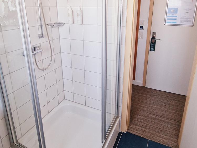 Das Badezimmer ist ausgestattet mit Toilette, Dusche, Fön, Kosmetikspiegel und Seifenspender. Mit einer Größe von ca. 20-25 qm bieten die Zimmer mit Balkon im Garni Hotel Metzingen ausreichend Platz, um sich zu entspannen oder bei Bedarf produktiv zu arbeiten.