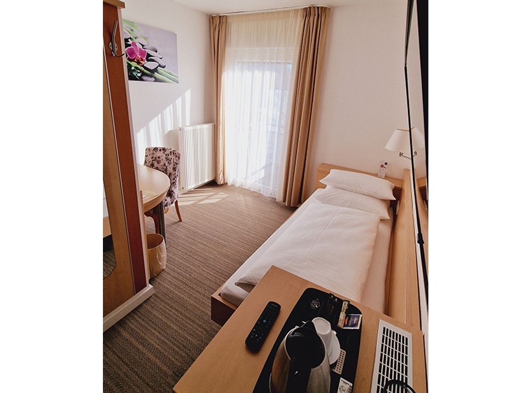 Das gemütliche Einzelzimmer mit Balkon im Garni Hotel Metzingen bietet Ihnen die perfekte Atmosphäre zum Entspannen und Arbeiten. Annehmlichkeiten und Komfort verbinden sich hier zu einem harmonischen Ganzen – wie in allen 21 liebevoll gestalteten Zimmern des Hotels. Genießen Sie kostenfreien High-Speed-Internetzugang, TV und SAT-System sowie einen Schreibtisch mit Stuhl, der auch für produktives Arbeiten ideal ist.